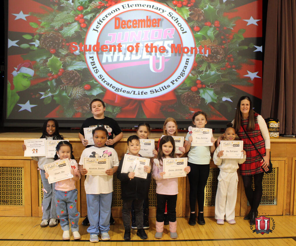 Many students were recognized for the first time, at the December student of the month assembly at Jefferson Elementary! Families joined for the special occasion to highlight student growth as certificates were announced and presented. With the energy of winter recess in the air, students showed maturity and answered questions about being respectful, responsible and safe at school! Congratulations to the deserving Jefferson students of the month!